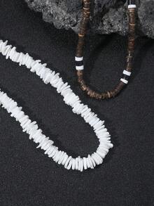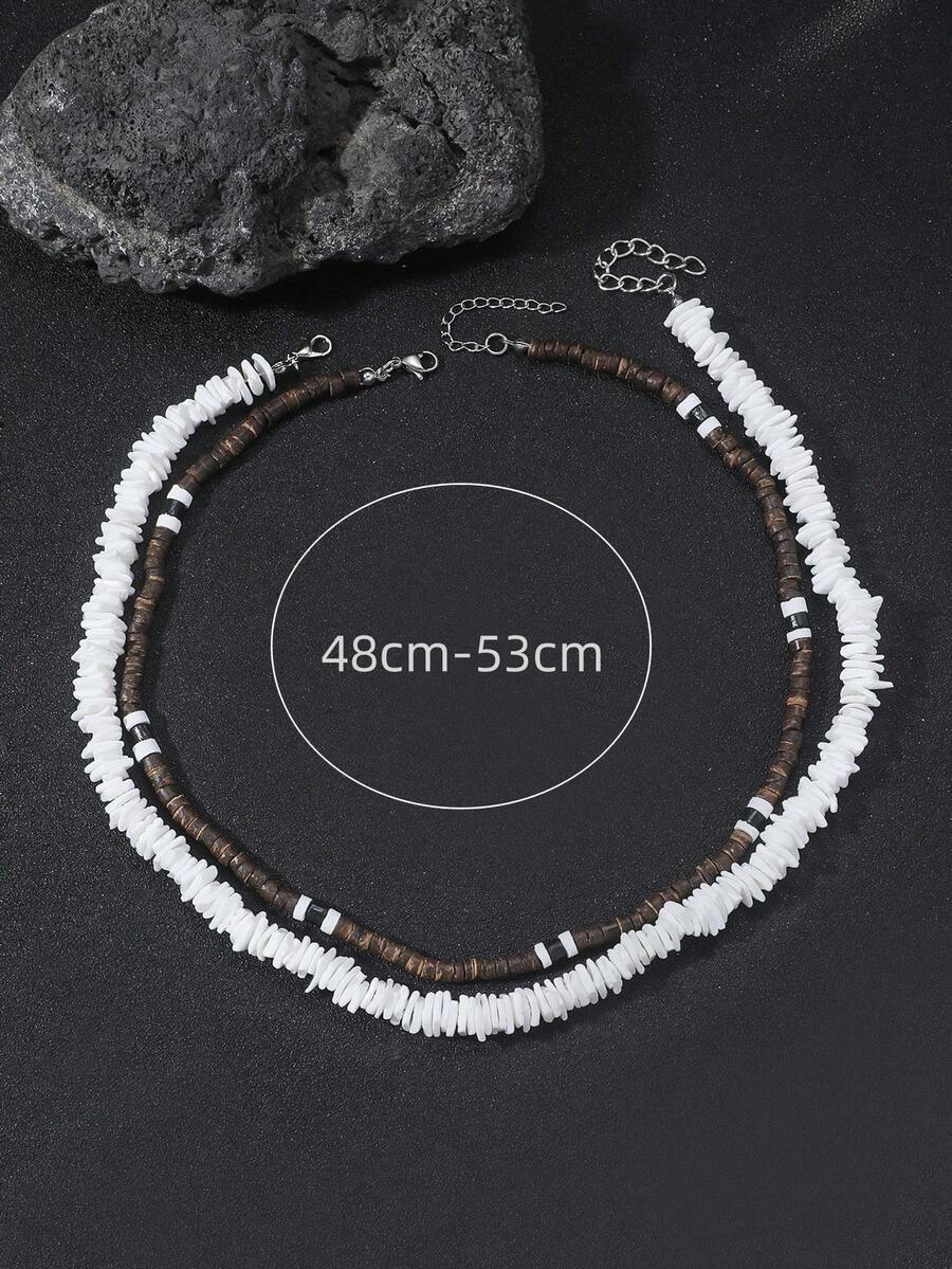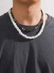 Goth 2pcs/set Fashionable Vintage Geometric Natural Stone & Coconut Shell Beaded Necklace For Men