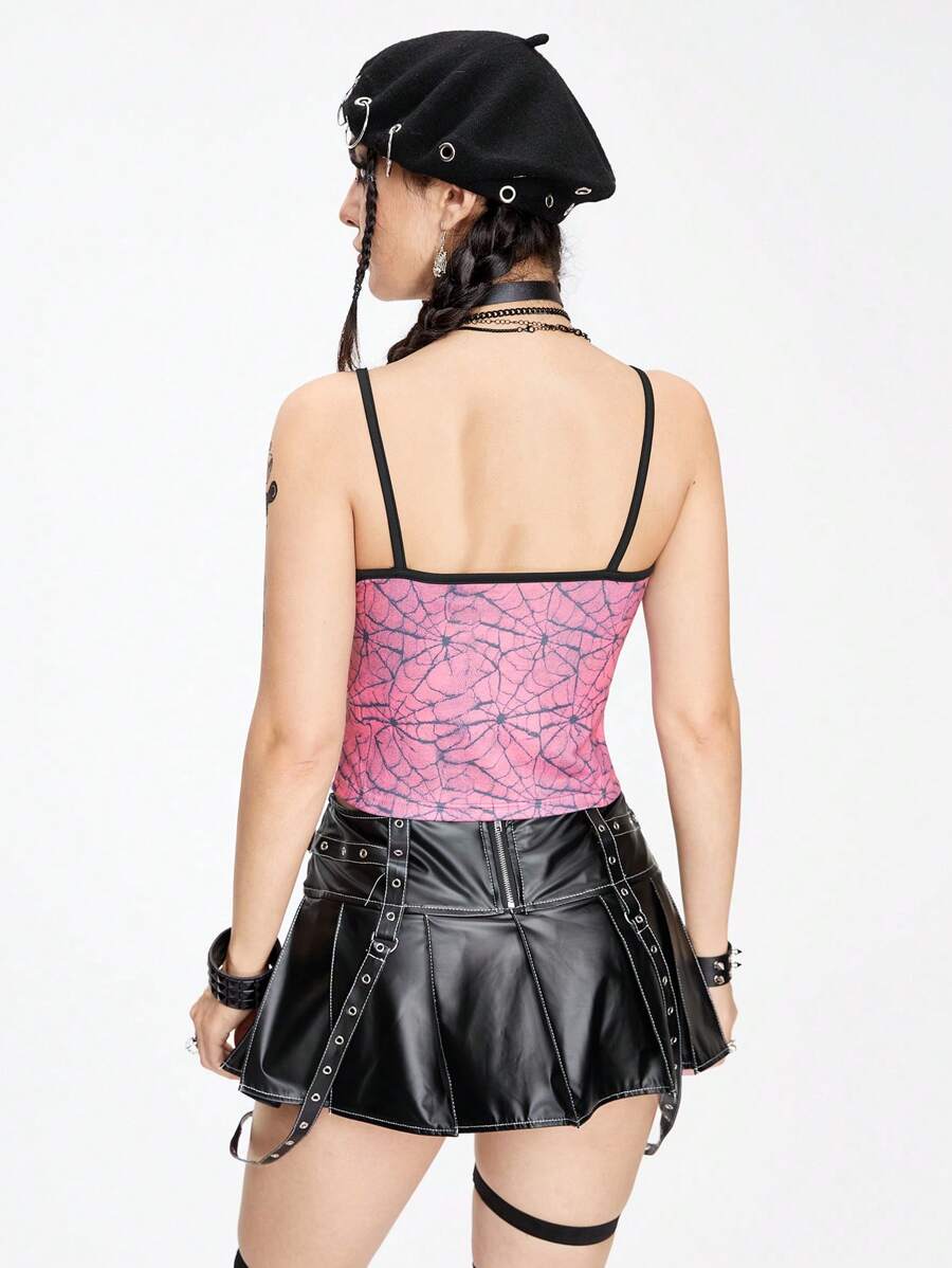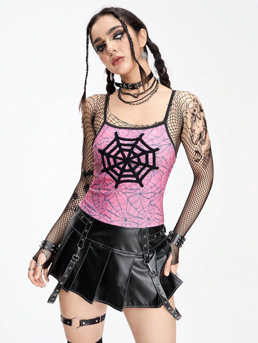 3D Spider Embroidered Women's Tight Tank Top, Gothic Style