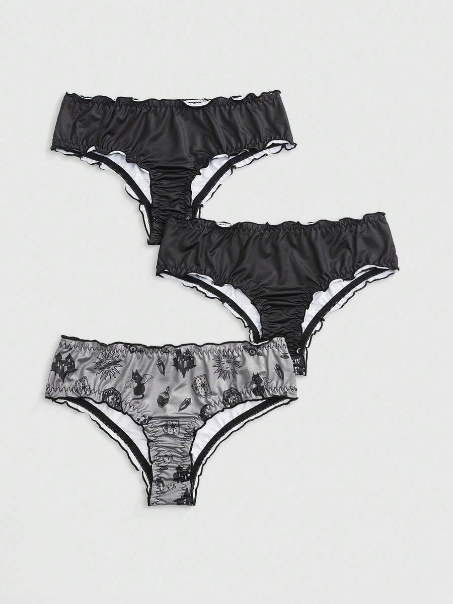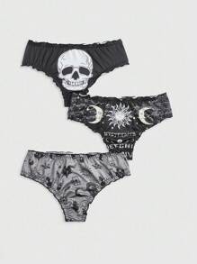 3pcs/Pack Gothic Skull, Sun & Moon Pattern Briefs Set