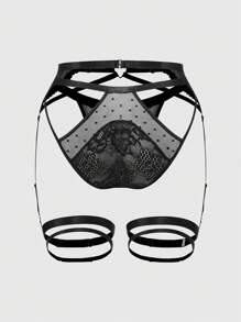3pcs/Set Goth Lace Underwire Bra, G-String And Garter Belt Sexy Lingerie Set