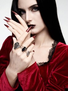 Goth 5pcs/Set Punk & Hip-Hop Black Snake & Rose Ring
