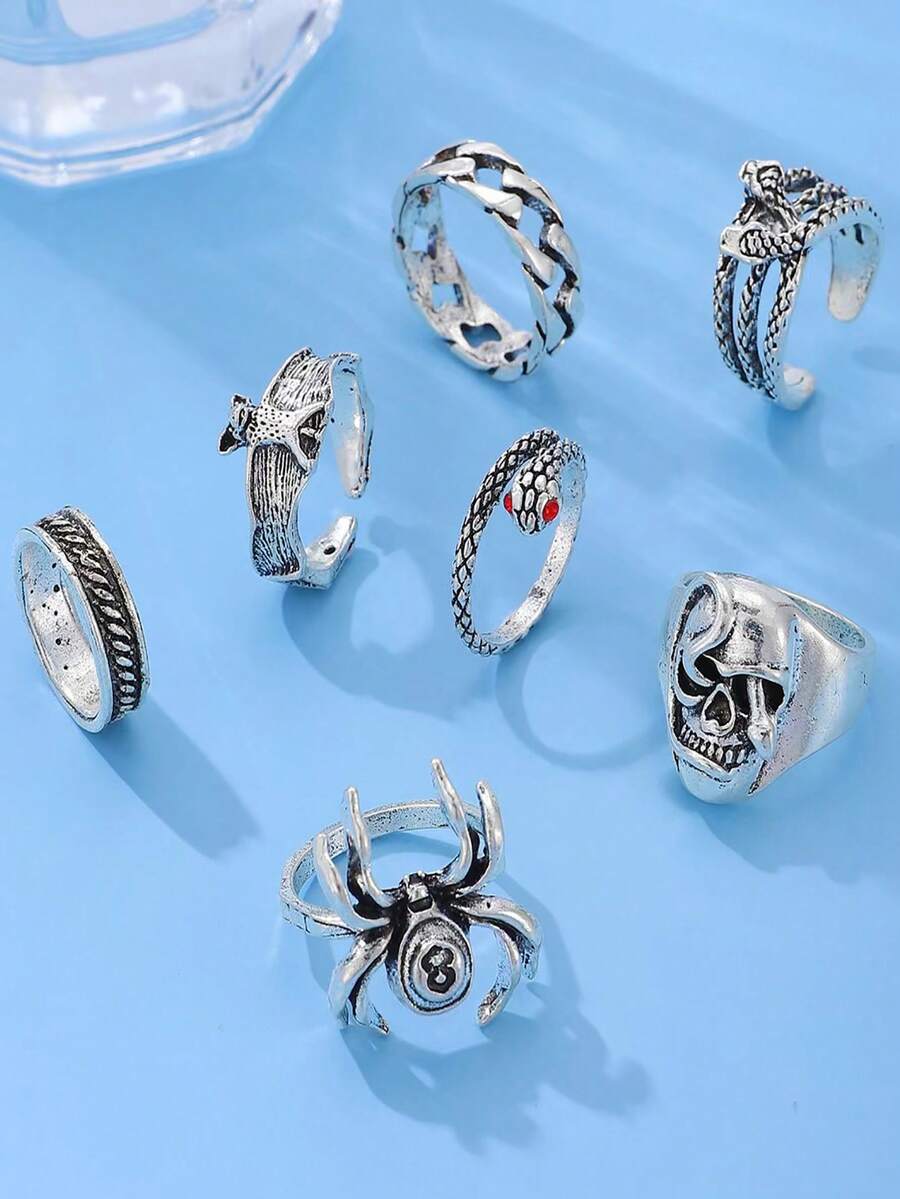 Goth 7pcs/set Skull & Spider Design Ring Set