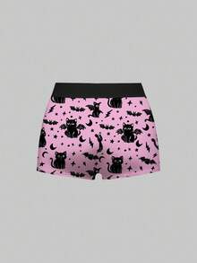 Goth Black Cat, Bat, Star, Moon Full Print Black Elastic Waist Briefs