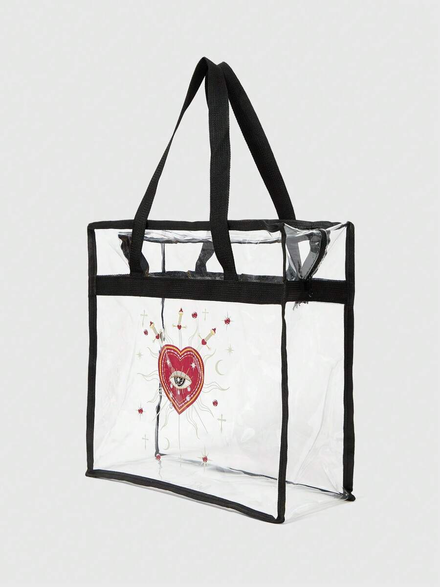 Goth Black Transparent Tote Bag, Waterproof For Daily Shopping And Beach Use