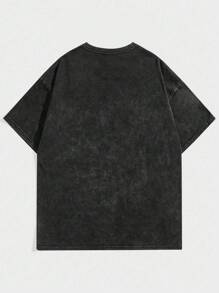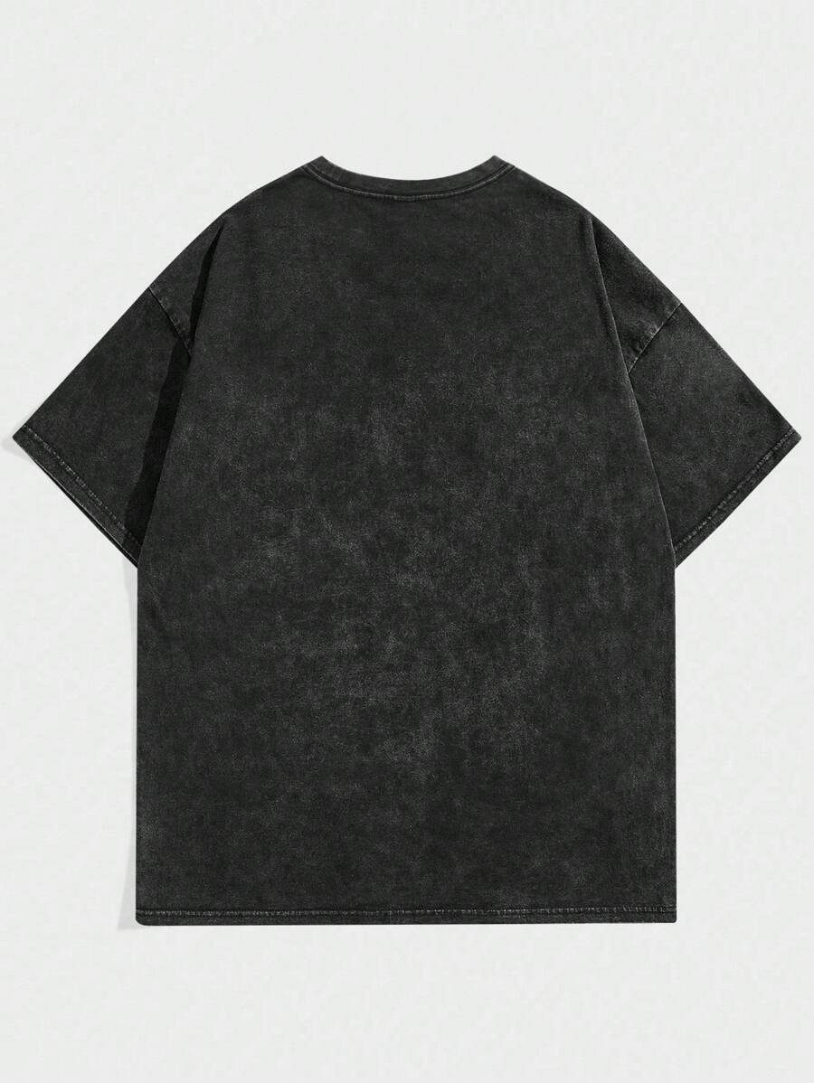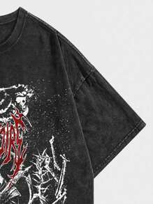 Goth Casual Loose Fit Skull Men's Short Sleeve T-Shirt With Acid-Washed