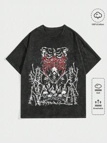 Goth Casual Loose Fit Skull Men's Short Sleeve T-Shirt With Snow Flake Print
