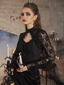 Goth Contrast Lace Cut Out Front Top