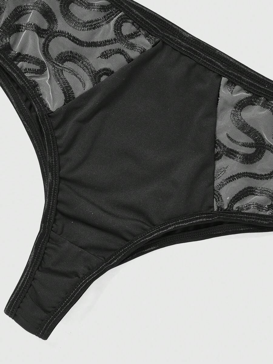 Goth Contrast Mesh Lingerie Set
