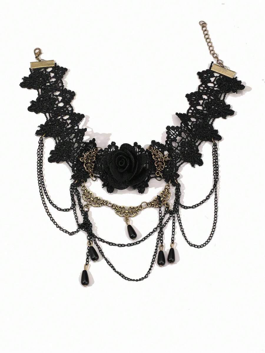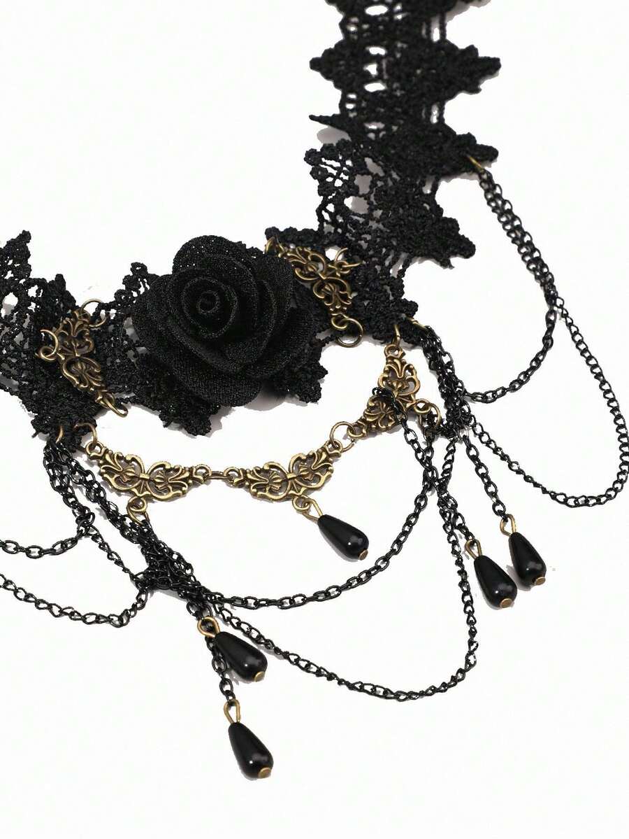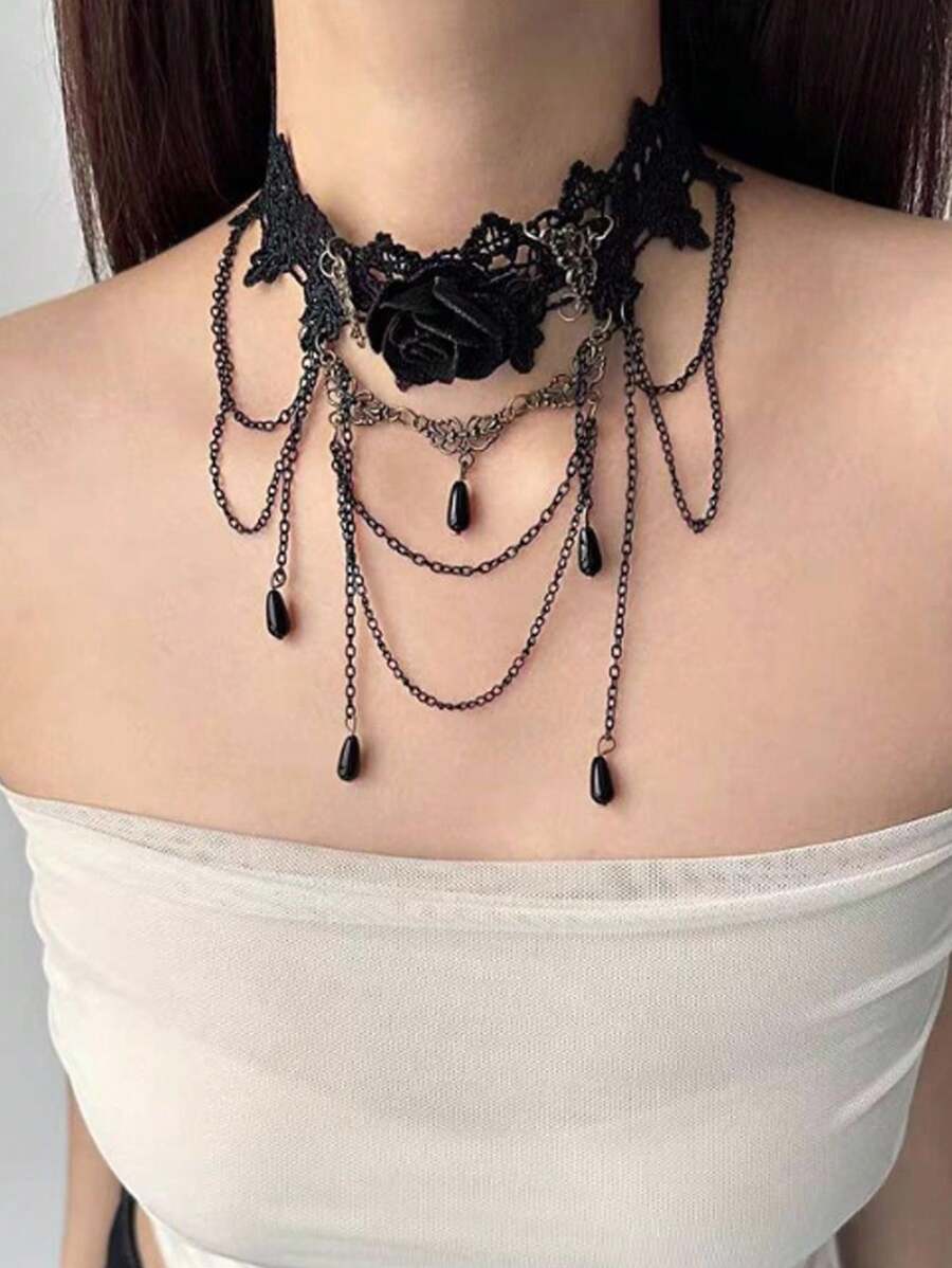 Creative Punk Cross Lace Necklace, Lolita Accessory, Gothic Retro Niche Collarbone Chain Choker Neck Strap For Women