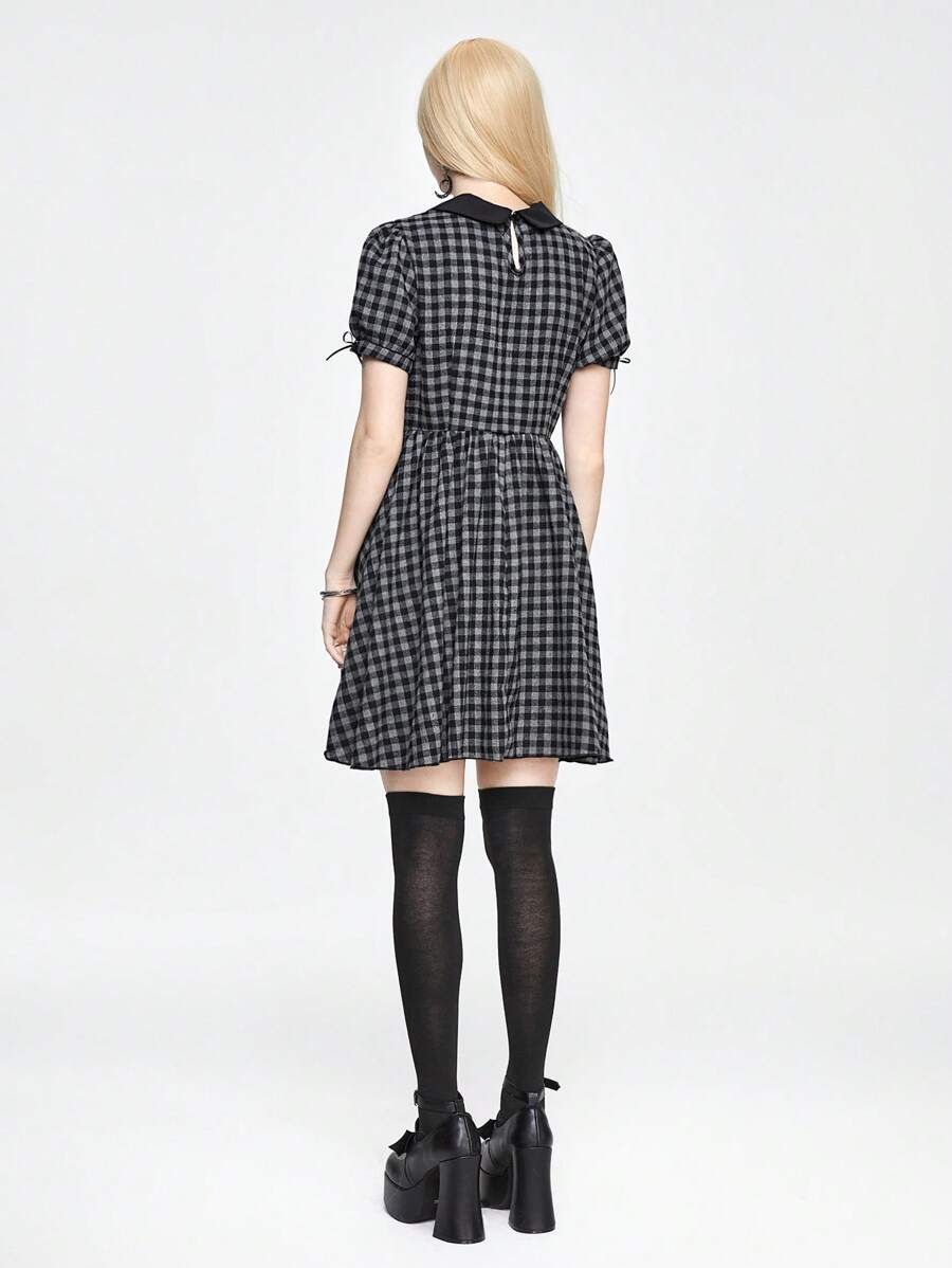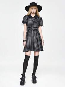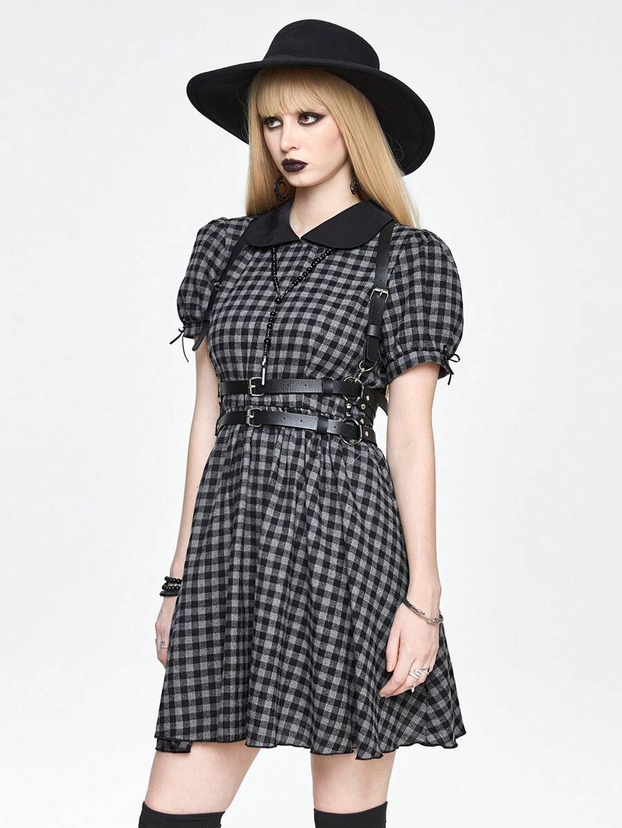 Goth Dark Academia Tartan Patchwork A-Line Dress For Women, School