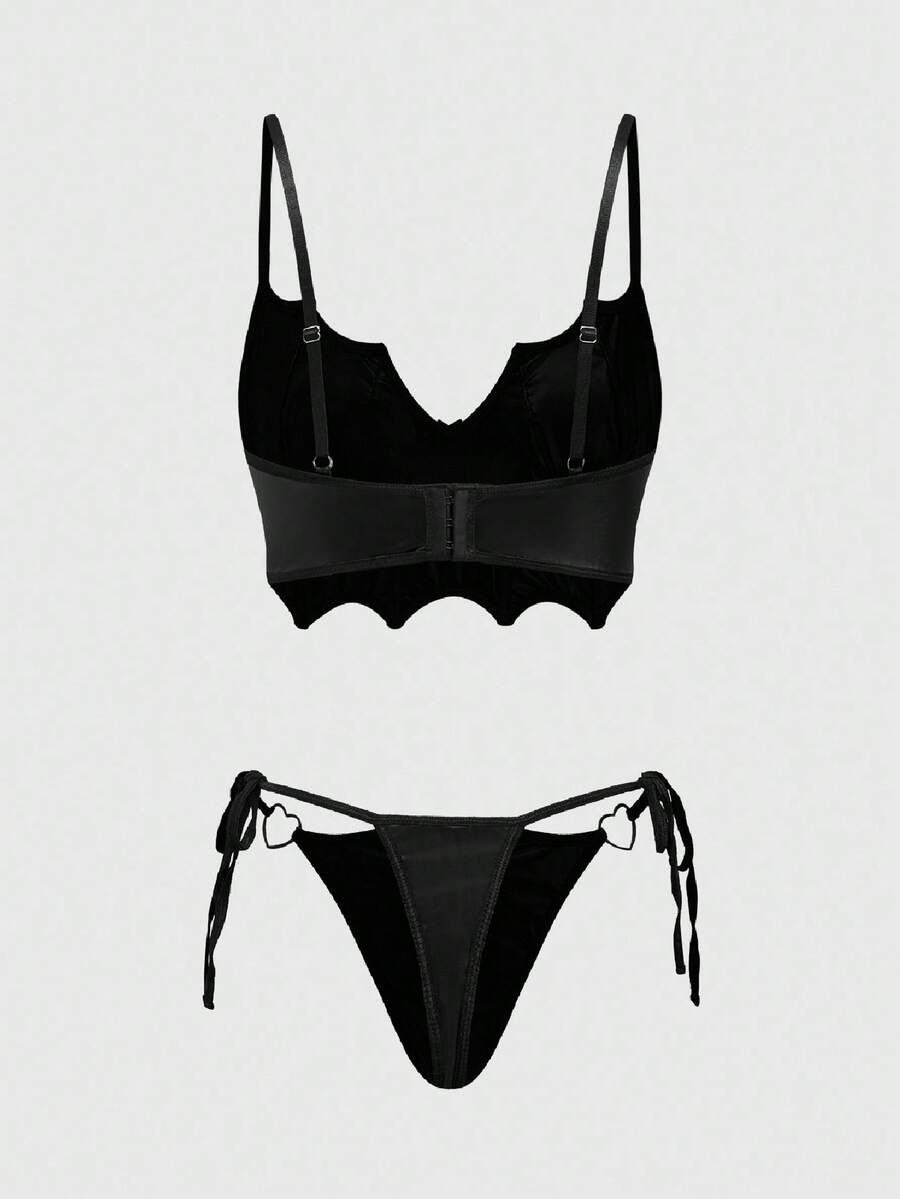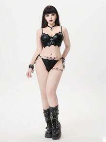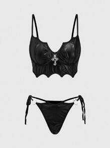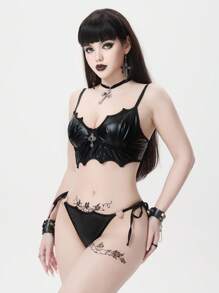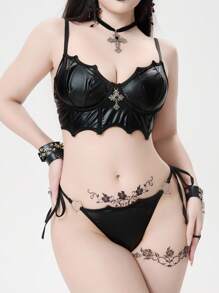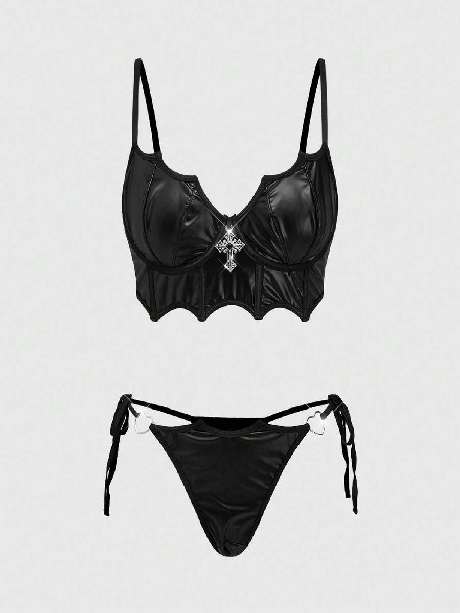 Dark Gothic Bat Wing Underwire Bralette & Garter Thong Cross Lingerie Set, Halloween