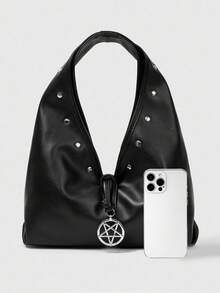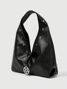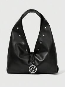 Goth Dark Punk Style Black PU Triangle Bag With Metal Stars And Studs For Daily Outings And Date Night Looks