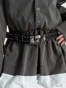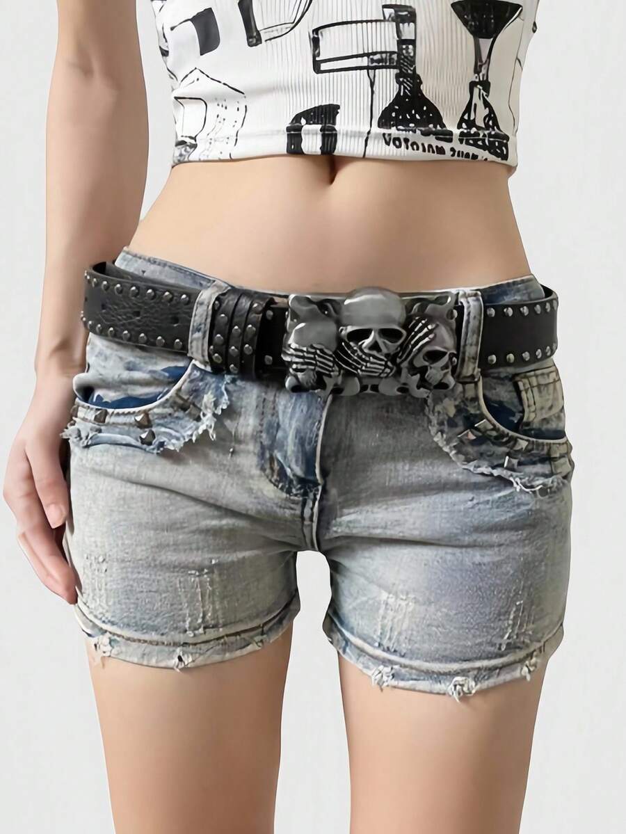Goth Dark Skeleton Hand Decor Casual Jeans Belt, Waist Belt, Halloween
