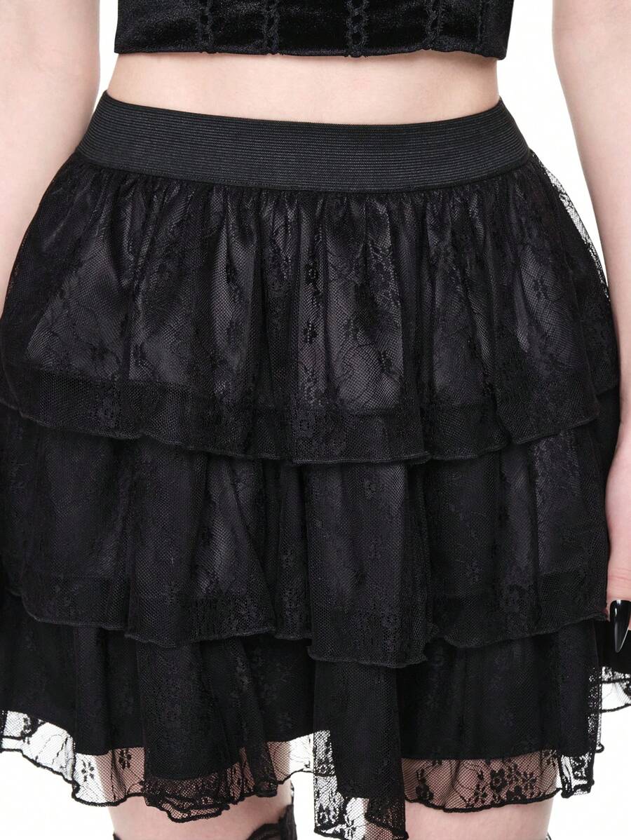 Elegant Vintage Gothic Romantic 3-Tier Lace A-Line Skirt
