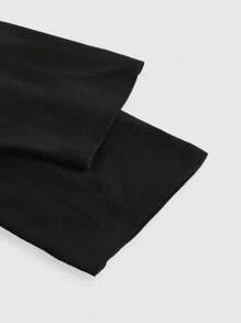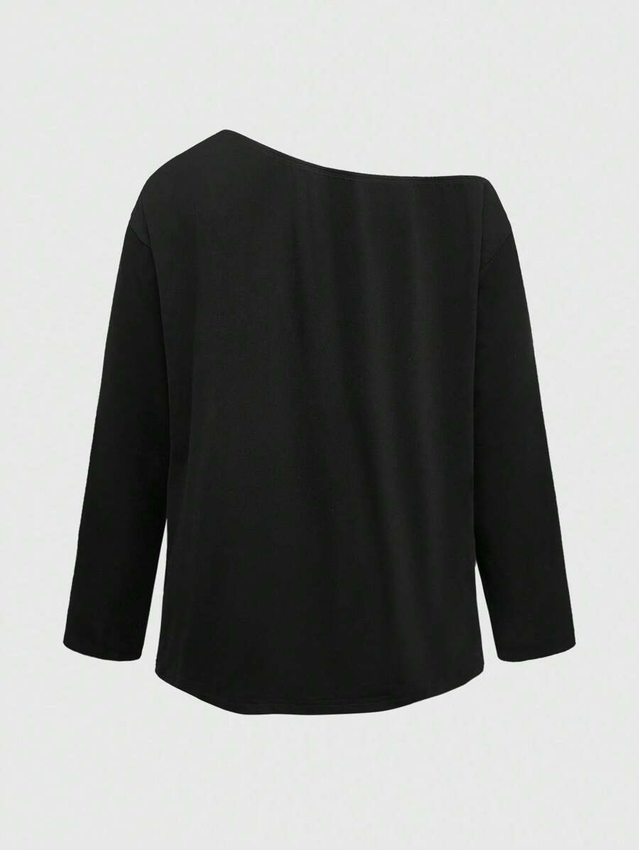 Goth Embroidered Rabbit, Cute Forest Style, Gothic Dark, Mushroom, Strawberry, Star, Butterfly, Sexy Asymmetrical Shoulder, Street Style, Loose Basic Black Solid Color Asymmetrical Shoulder Long Sleeve Plus Size T-Shirt