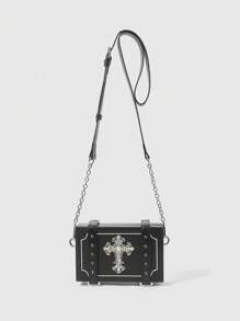Goth Fashionable & Elegant Cross Decor Box Crossbody Bag
