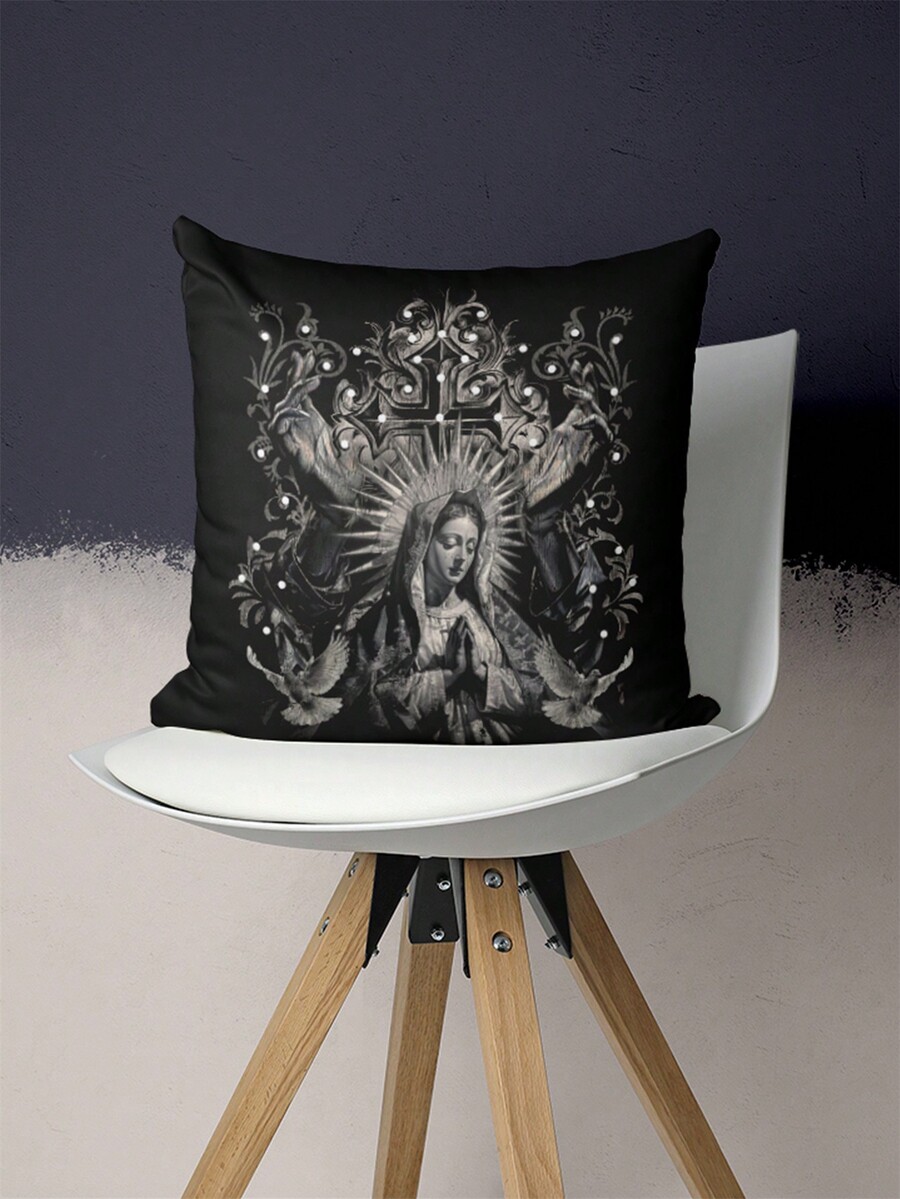 Goth Fashionable Pillowcase With Virgin Mary Cross Print