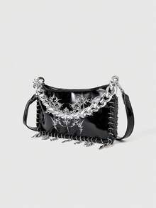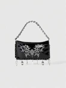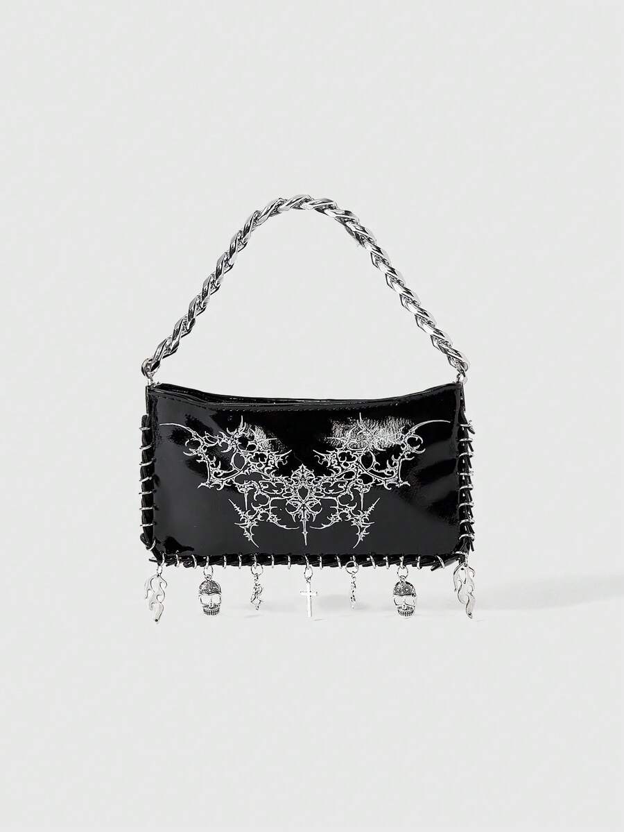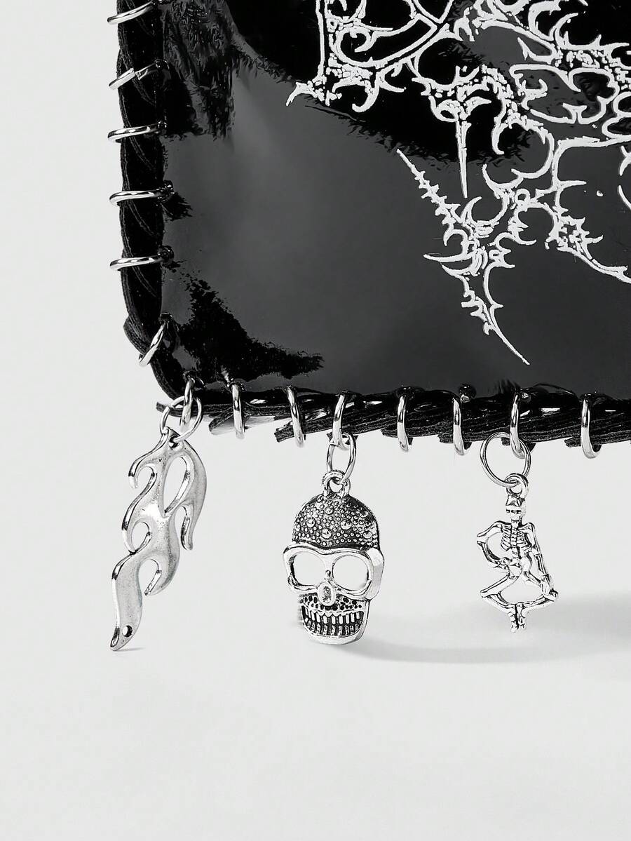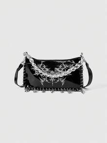 Goth Fashionable Rhinestone Cross & Spider Decoration Messenger Bag