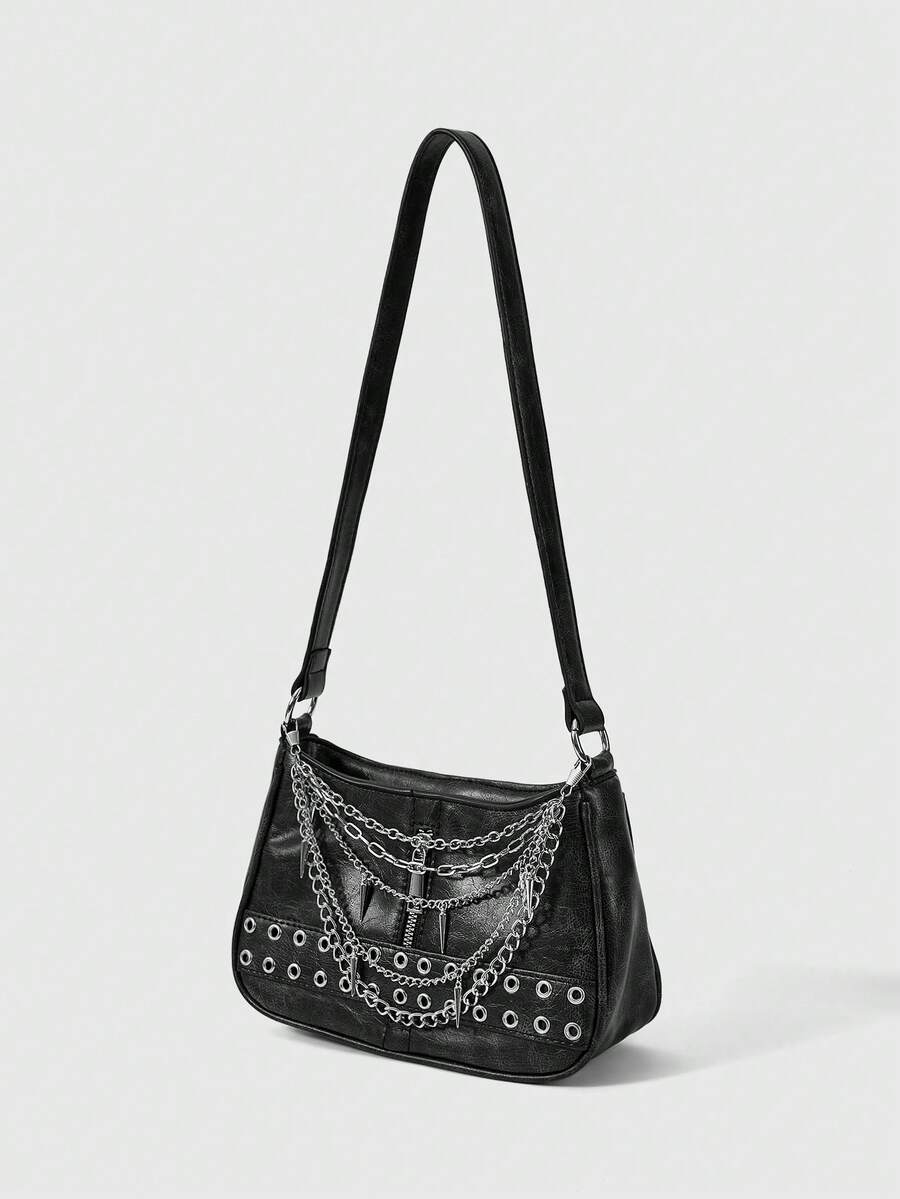 Goth Fashionable Women Eyelet Buckle Design Casual Shoulder Bag