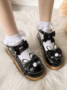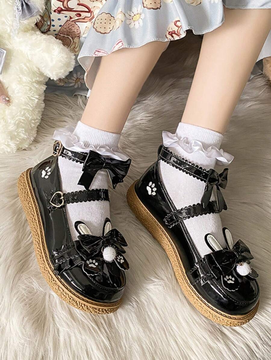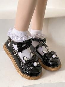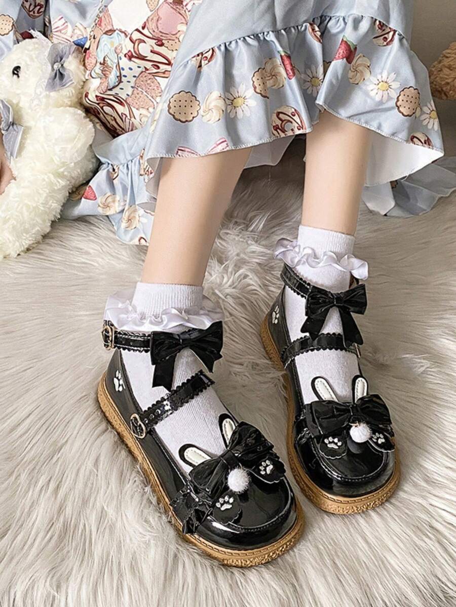 Goth Girls' Flat Shoes, Spring New Jk Uniform Dark Mary Jane Shoes With Low Heels