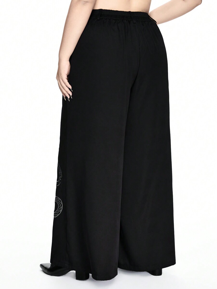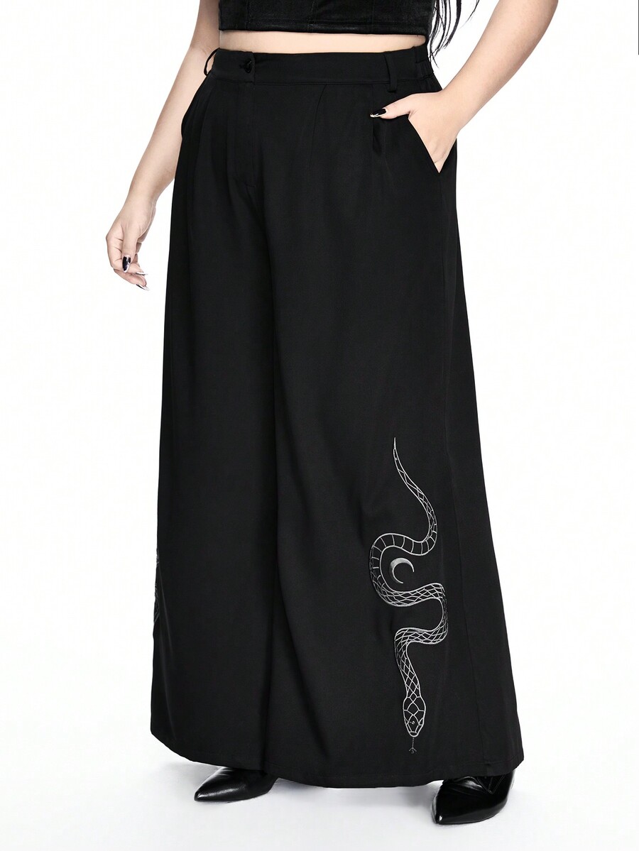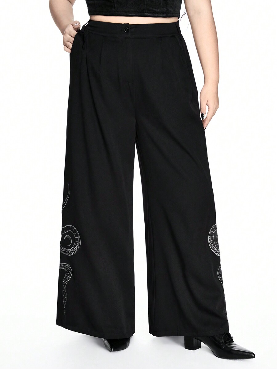 Gothic Casual Office Wide Leg Pants With Snake Embroidery In Plus Size
