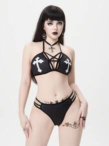 Goth Gothic Cross, Pentagram & Triangle Bralette & Panty Set, Halloween