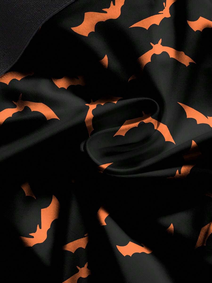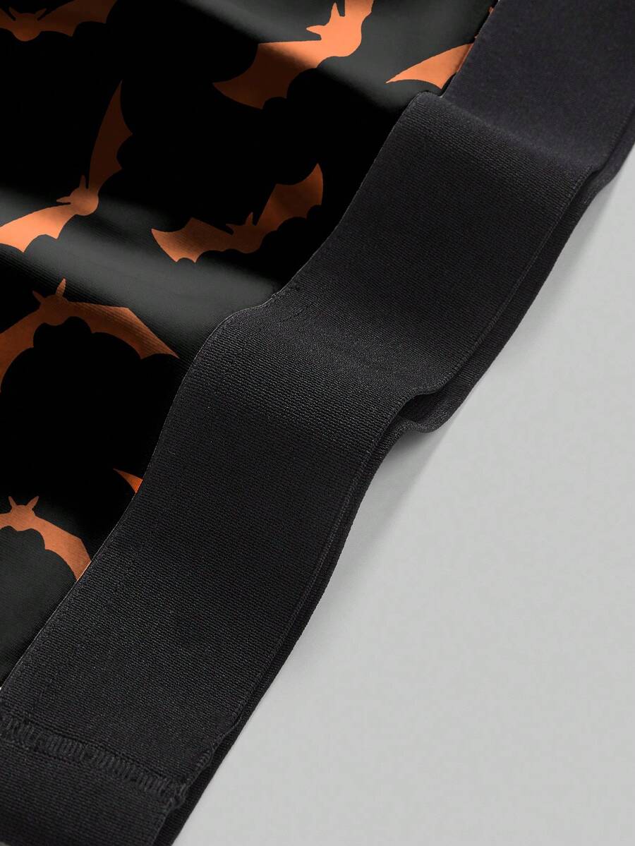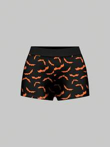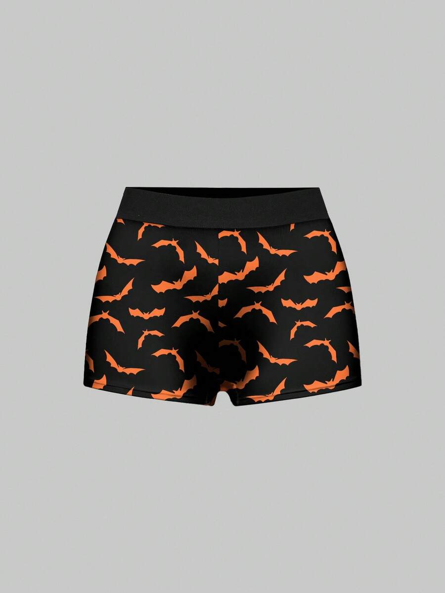 Gothic Dark Halloween Bat Print Elastic Waist Black Boxer Briefs
