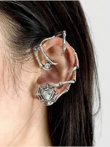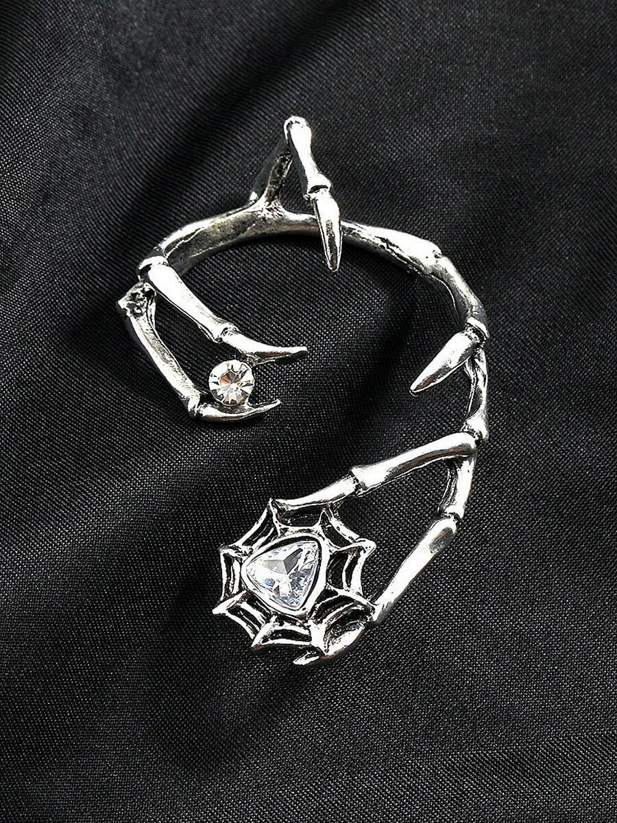 Gothic Dark Retro Spider Web Earrings, Punk Cool Eagle Claw Style Ear Stud With Diamond Embellishment