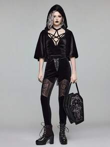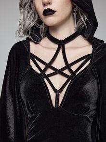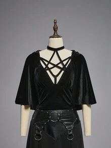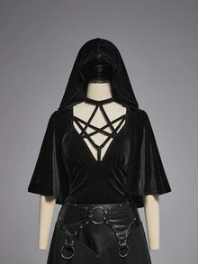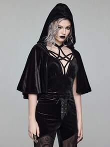 EDITION Gothic Palace Mysterious Pentagram Velvet Hooded Cape Vest Top, Halloween Outfit
