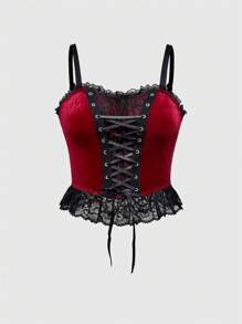 Gothic Sexy Style Spiderweb Sheer Mesh Splicing Velvet Tight Cropped Top