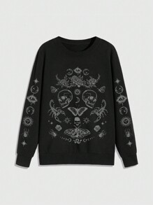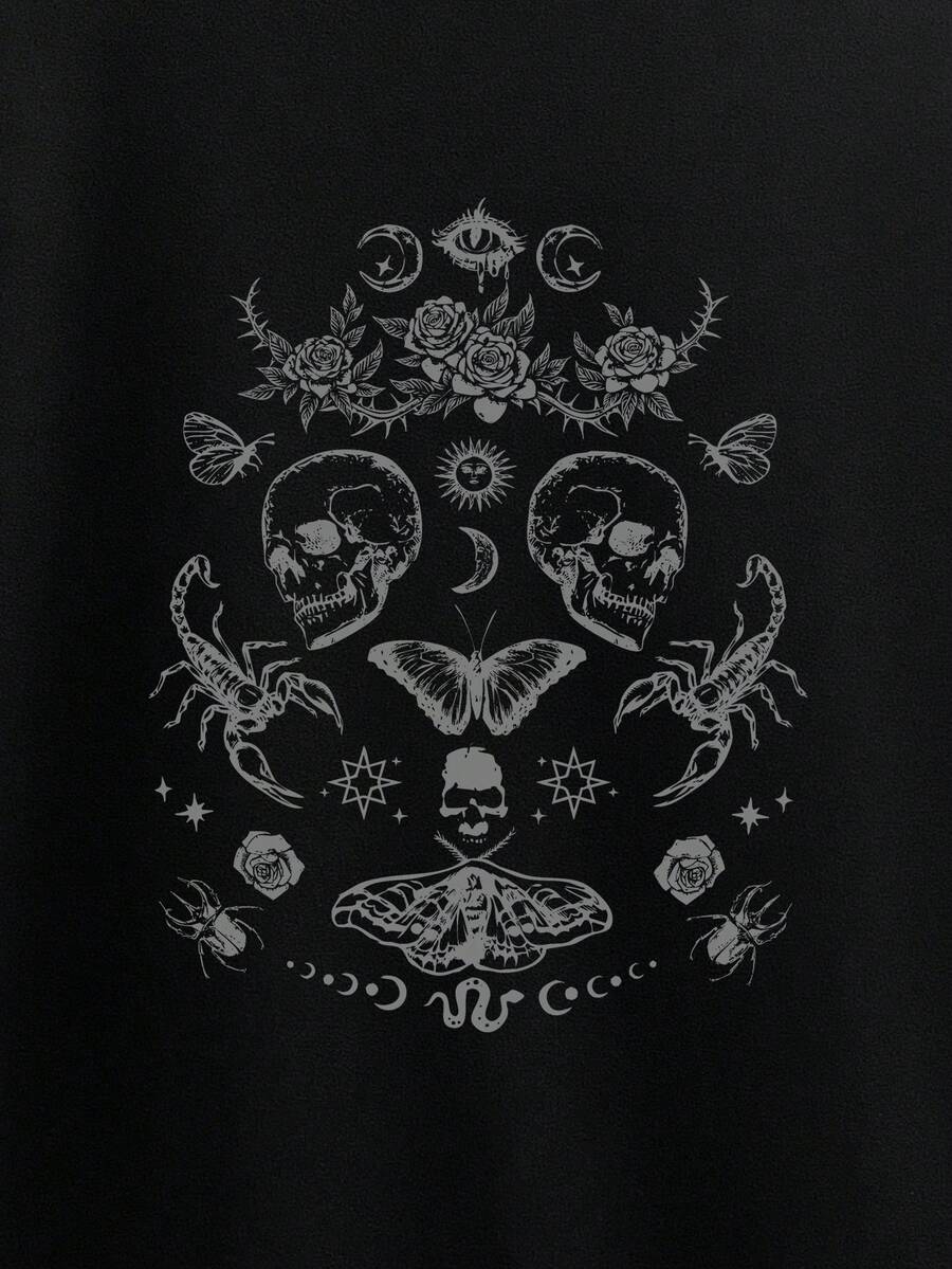 Gothic Skeleton & Plant Graphic Print Women Crew Neck Sweatshirt
