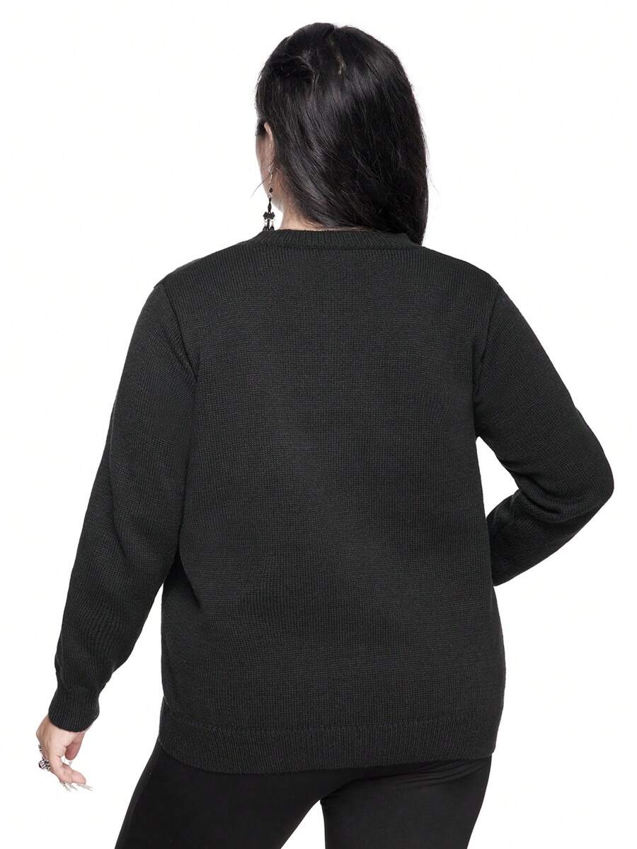 Gothic Spiderweb Embroidery Plus Size Women Knitted Cardigan, Autumn/Winter