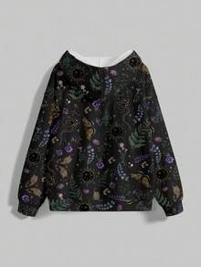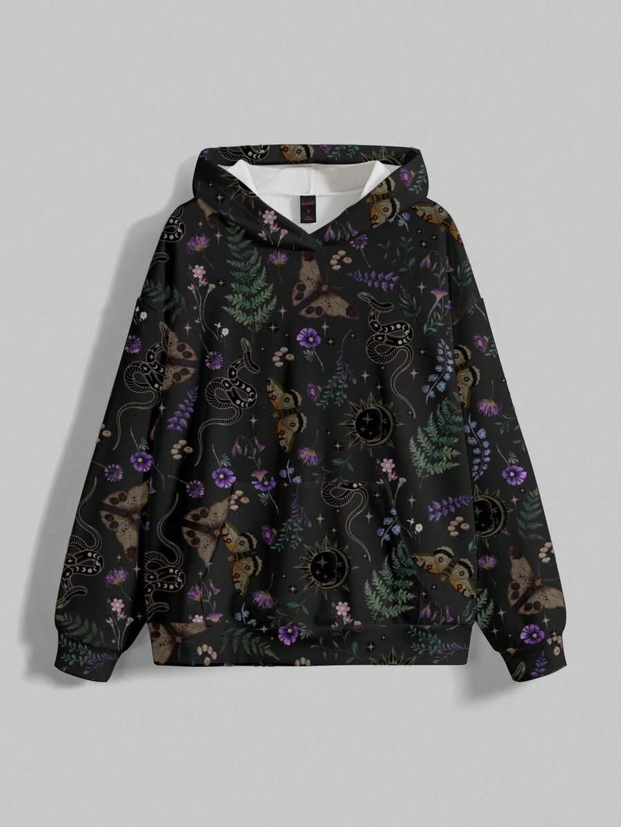 Goth Gothic Style Dark Mushroom, Moth, Bat Horror Dark Full Print Loose Fit Hoodie For Women