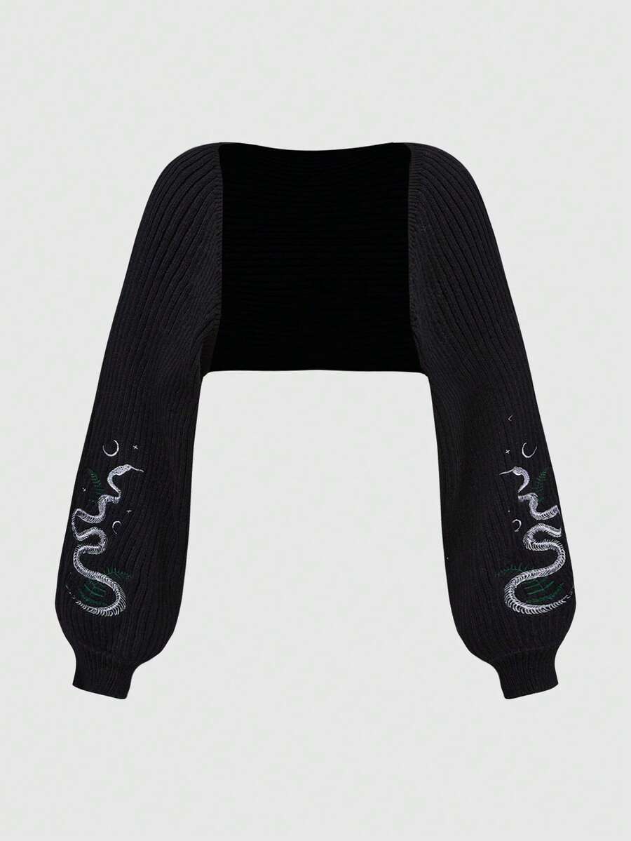 Gothic Style Snake Skin Pattern Embroidered Plus Size Batwing Sleeve Short Front Open Cardigan, Suitable For All Seasons
