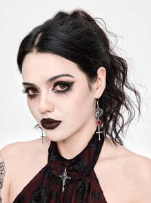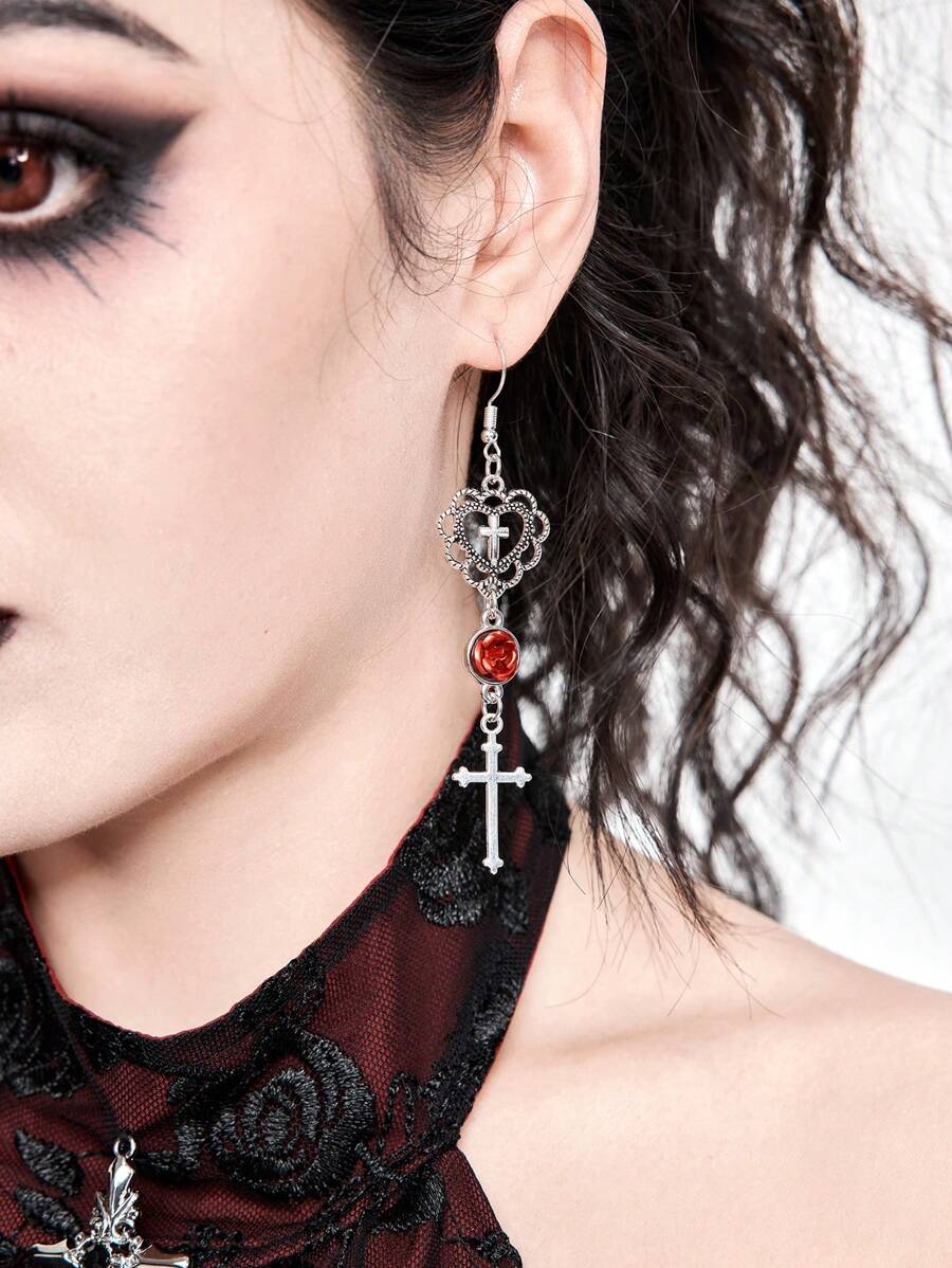 (Gothic Vampire Dropshipping) 1pair Gothic Style Red Rose Cross Earrings For Women