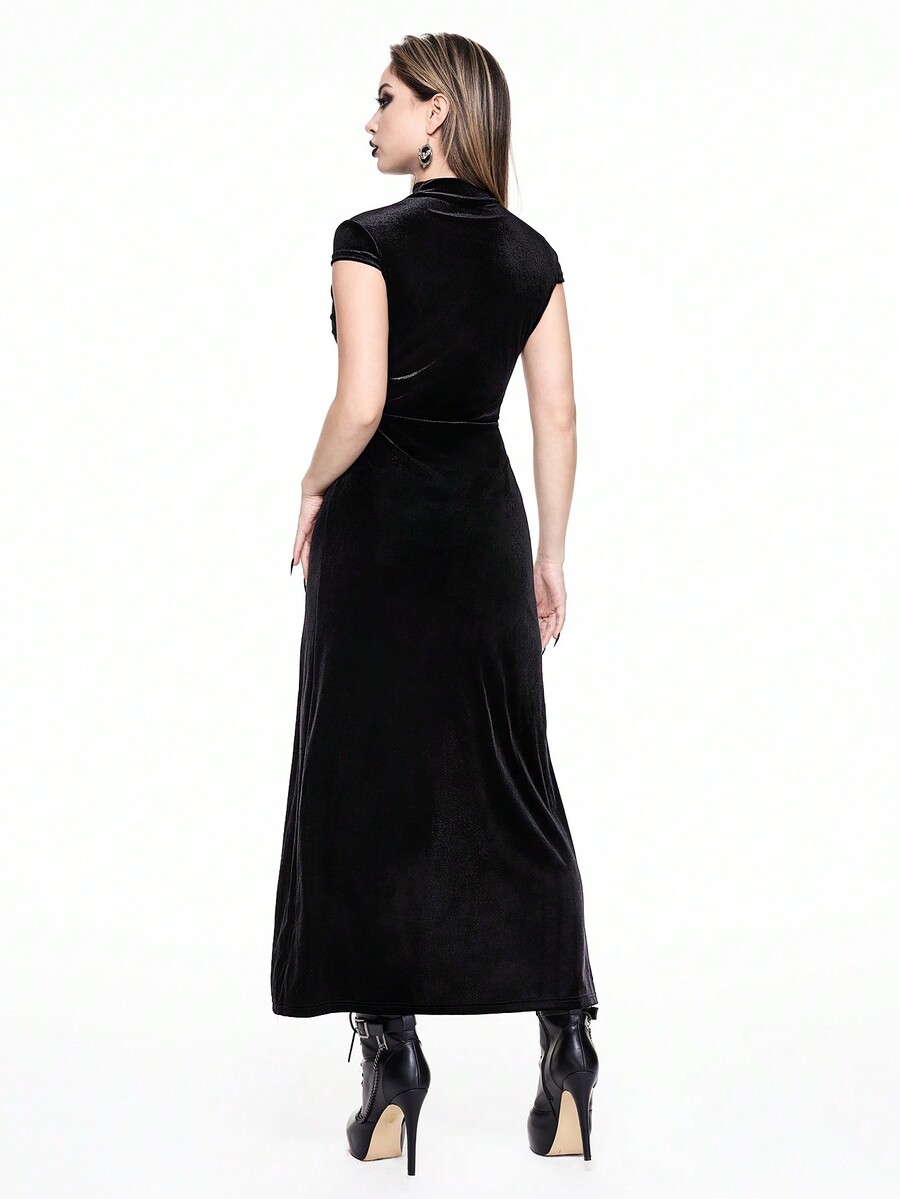 Gothic Vampire Tight-Fitting Crescent Moon Embroidery Hollow-Out High Slit Velvet Dress