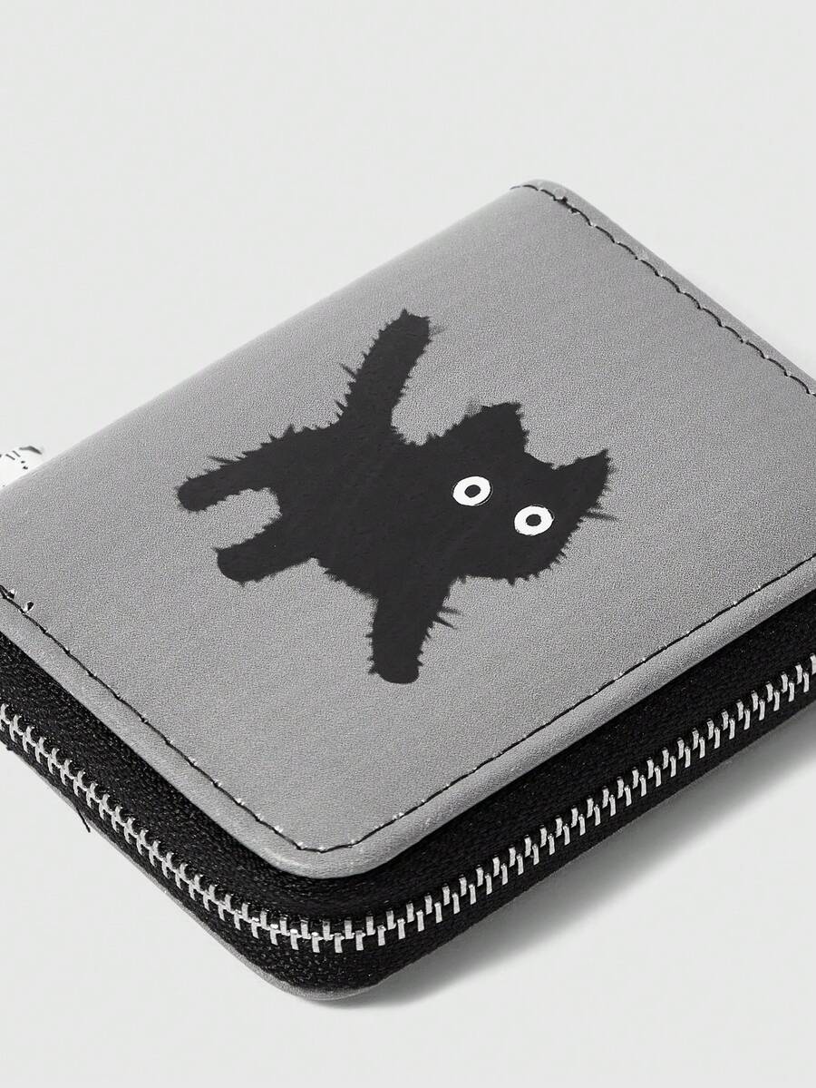 Goth Gray-Based Black Cat With Bowknot Design Cute Creative Multi-Functional Card Holder Wallet
