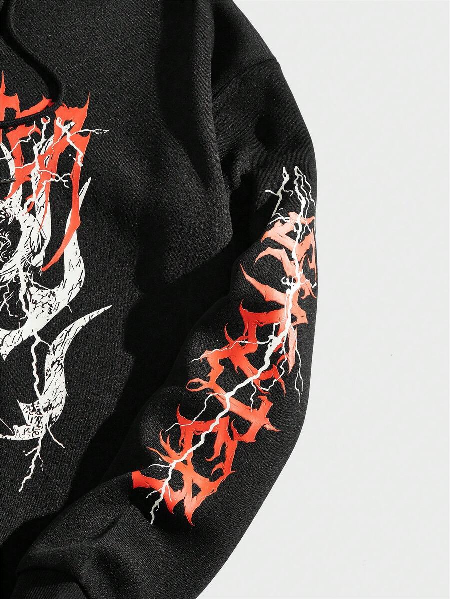 Goth Guys Letter & Figure Print Drawstring Hoodie