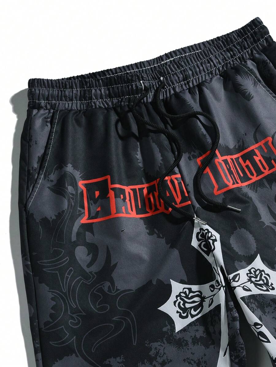 Goth Guys Letter Graphic Drawstring Waist Pants