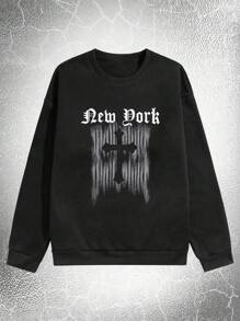 Goth Guys Letter Graphic Sweatshirt