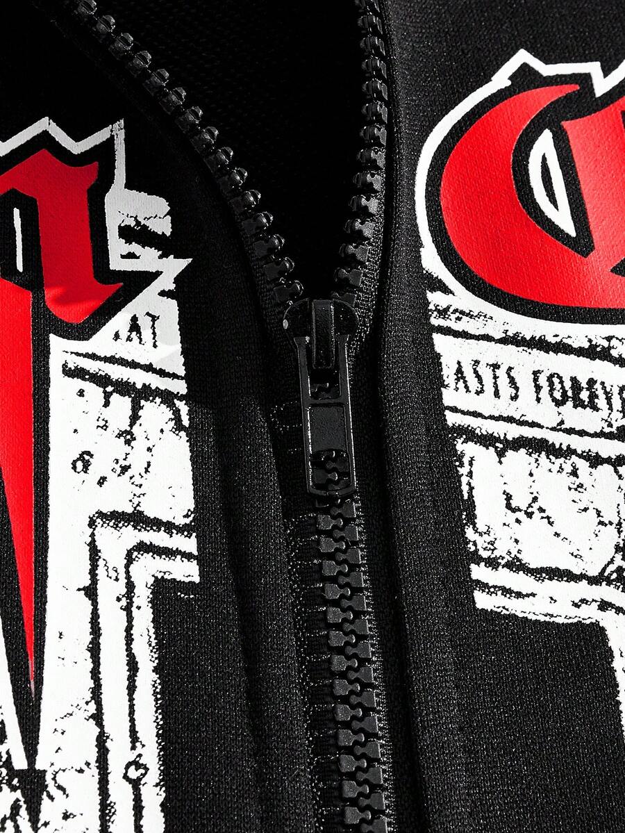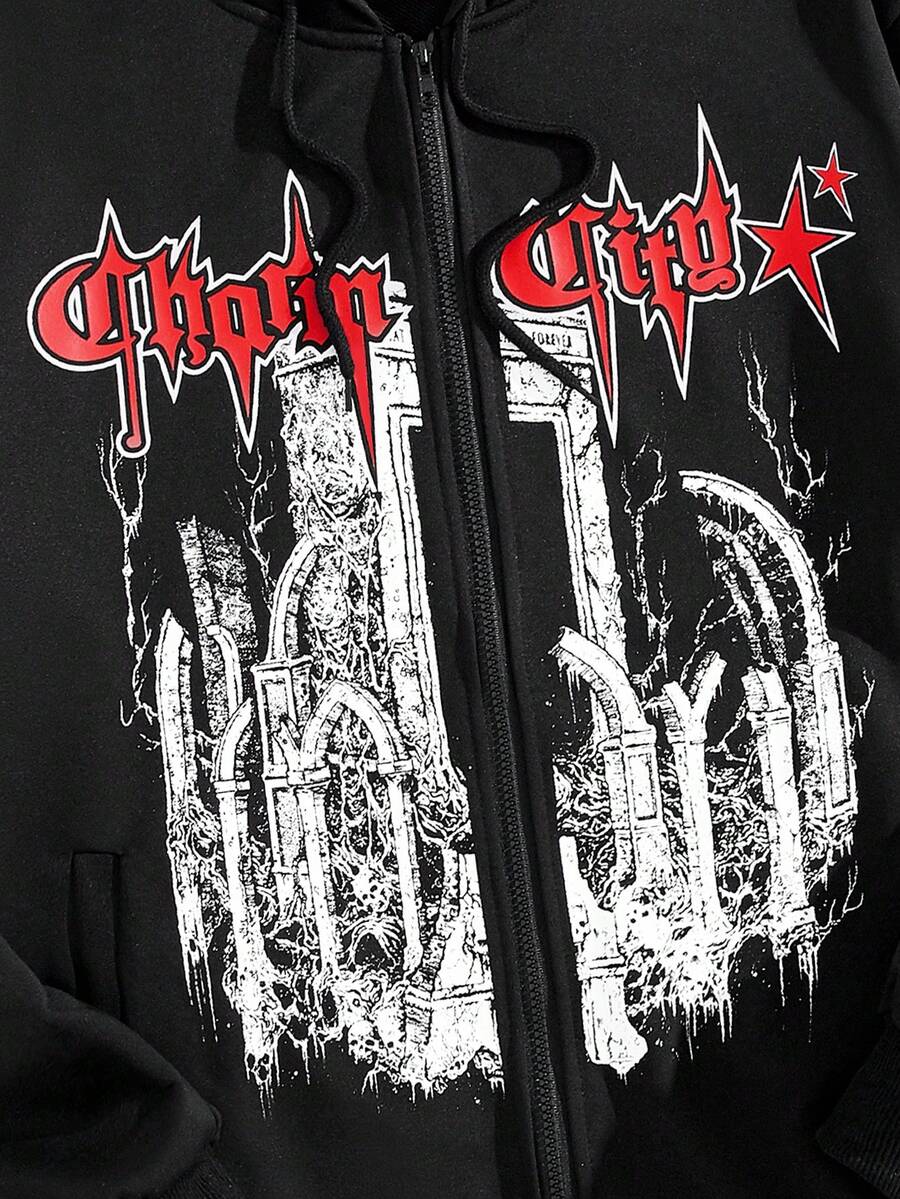Goth Guys Letter Graphic Zip Up Drawstring Hoodie