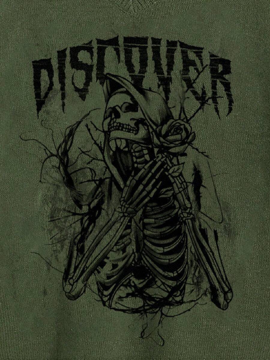 Goth Guys Letter Skull Pattern Distressed Sweater