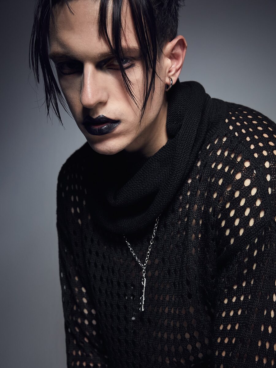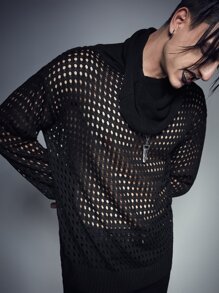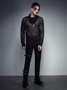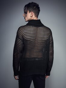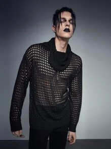Goth Guys Pointelle Knit Shawl Collar Sweater