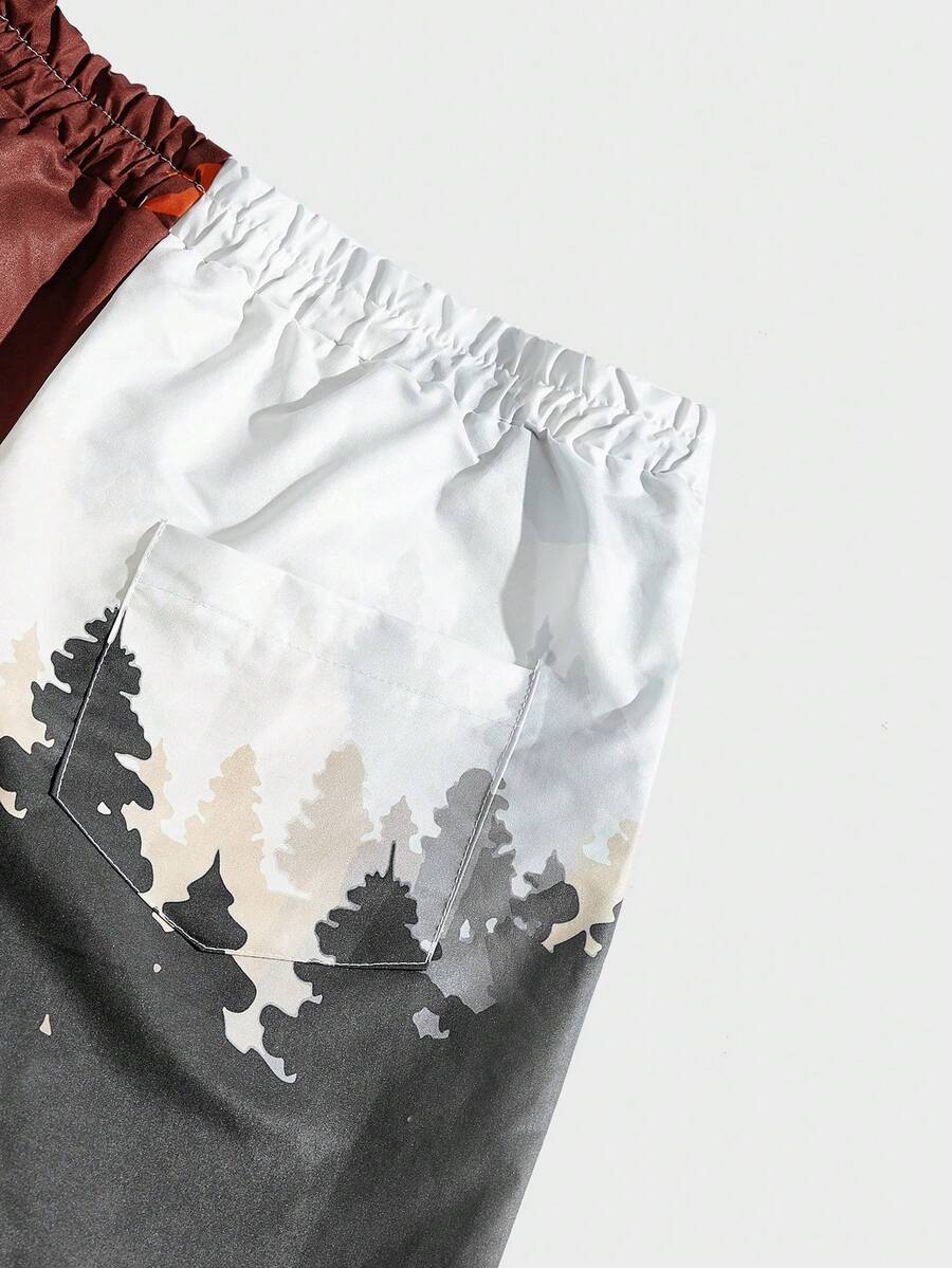 Goth Guys Skull & Letter Graphic Two Tone Drawstring Waist Pants