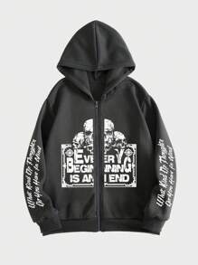 Goth Guys Slogan & Skull Print Zip Up Thermal Lined Hoodie