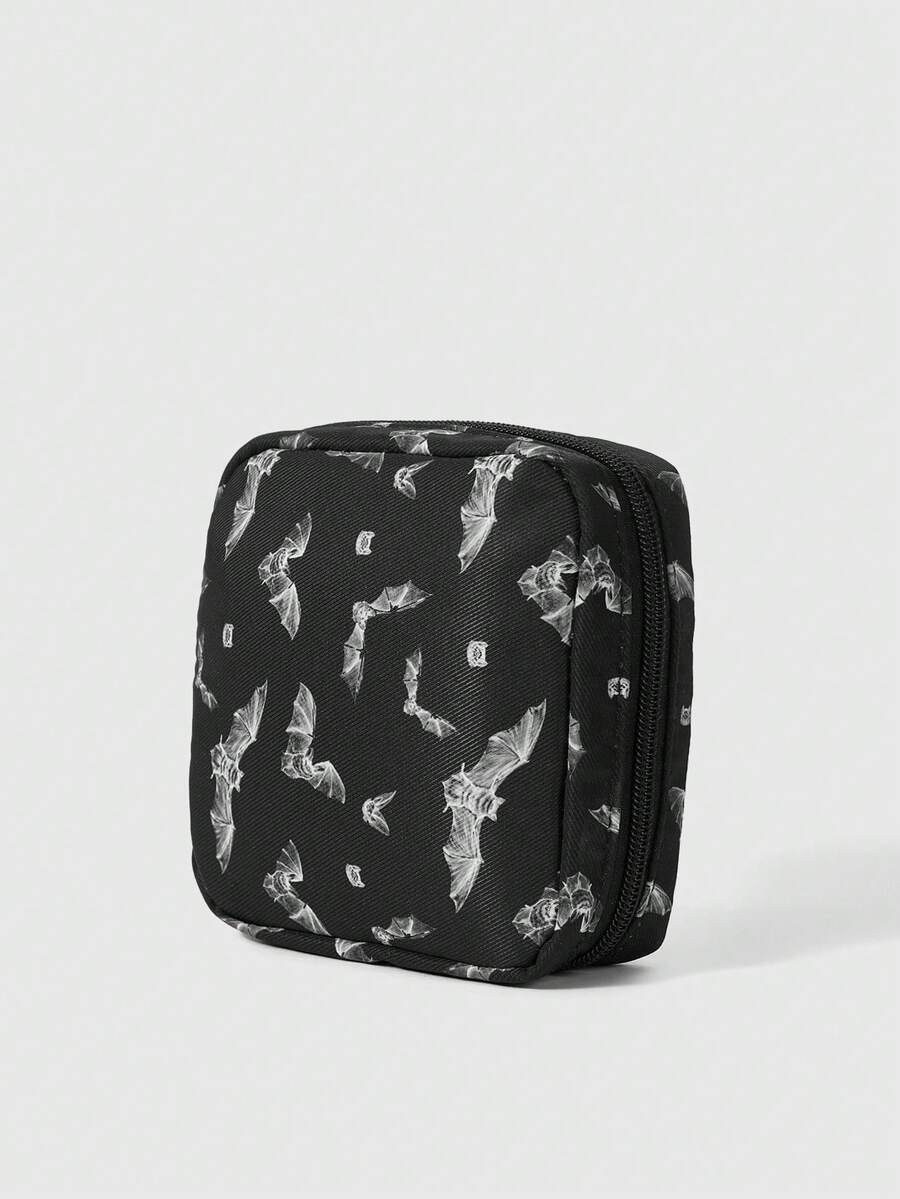 Goth Halloween Bat Themed Dark Large Capacity Portable Cute Makeup Bag Small Square Pouch