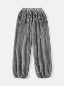 Goth Hand Skeleton Embroidery Drawstring Waist Teddy Pants