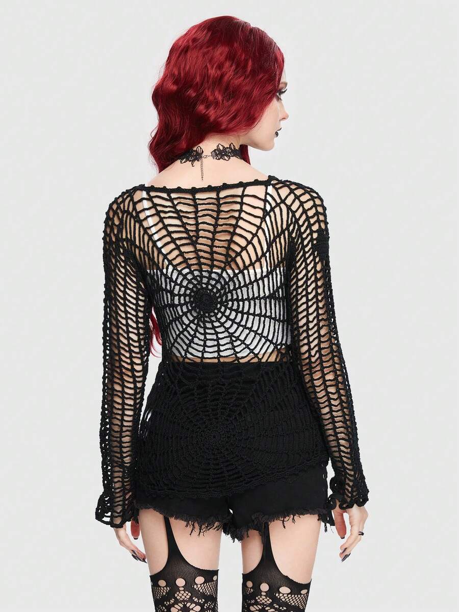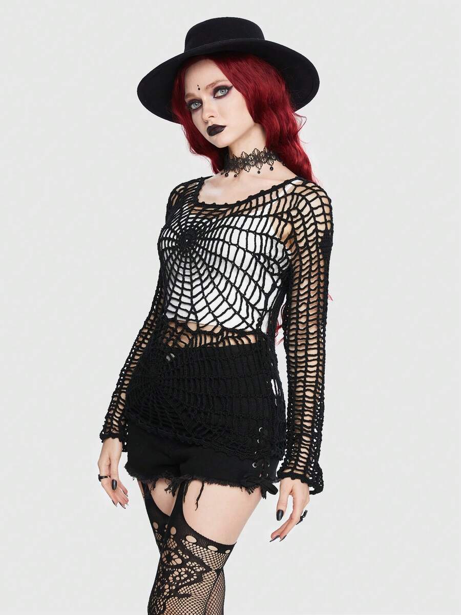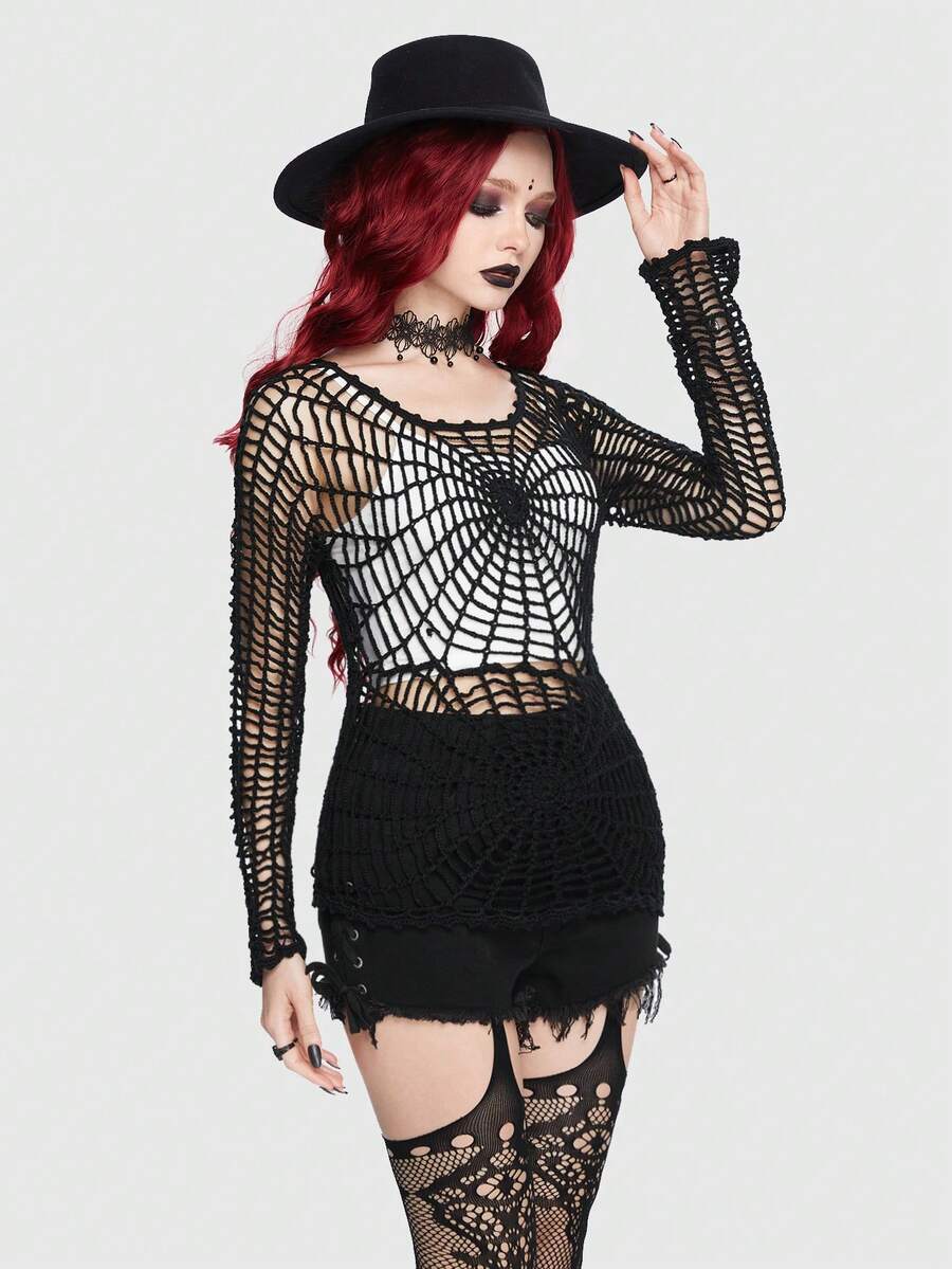 Goth Hollow Out Fishnet Bodycon Sweater