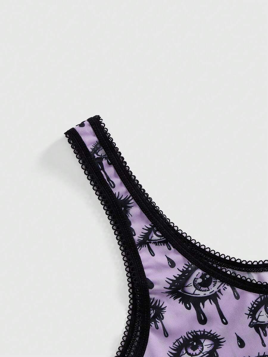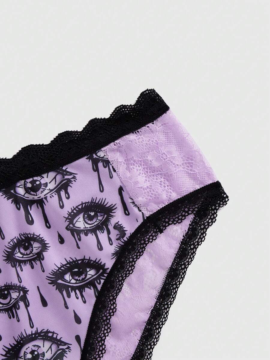 Goth Horror Nightmare Crying Eye All-Over Print Lace Patchwork Wireless Bra & Panty Set