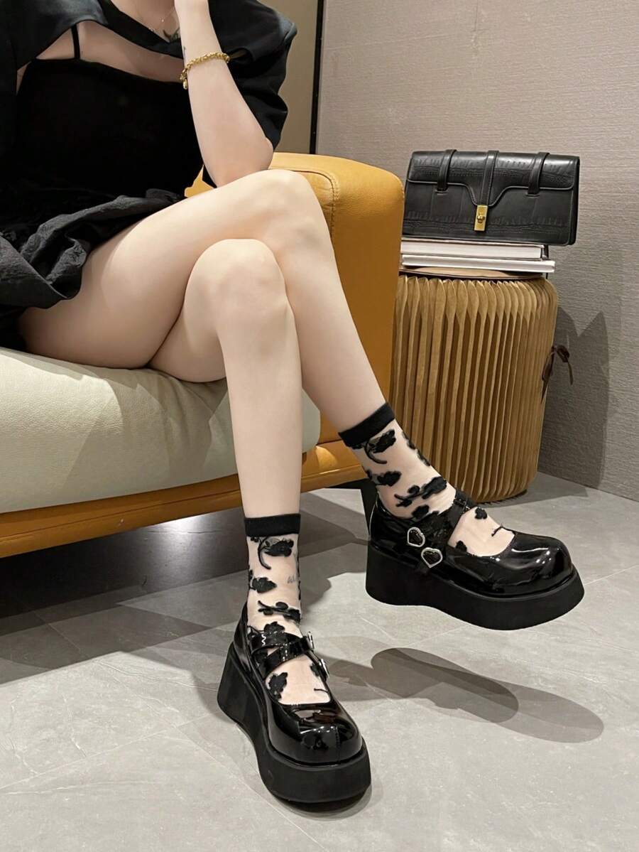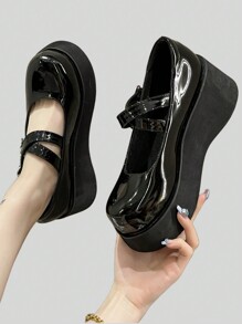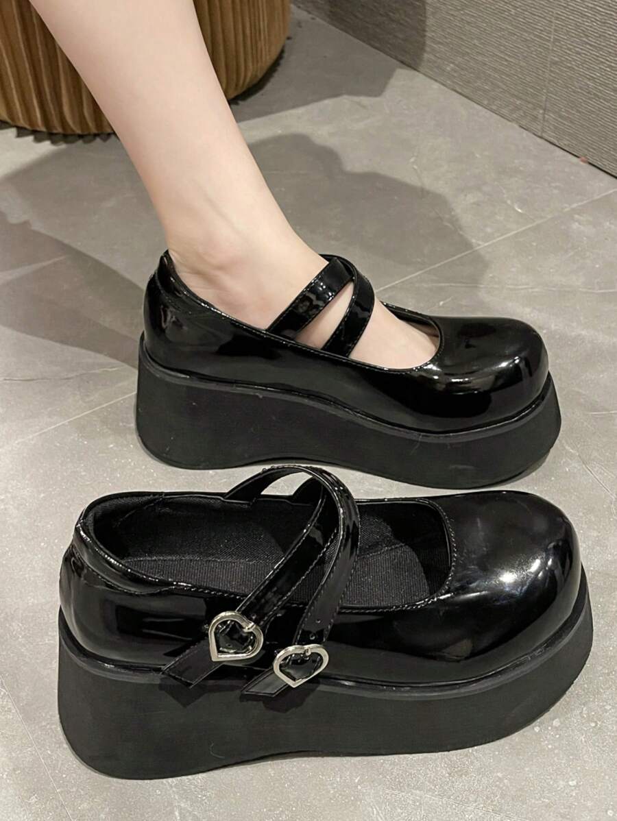 Goth Japanese-Style Fashion Brand French Cross-Band Round-Toe Thick-Soled Muffin Shoes Mary Jane Shoes